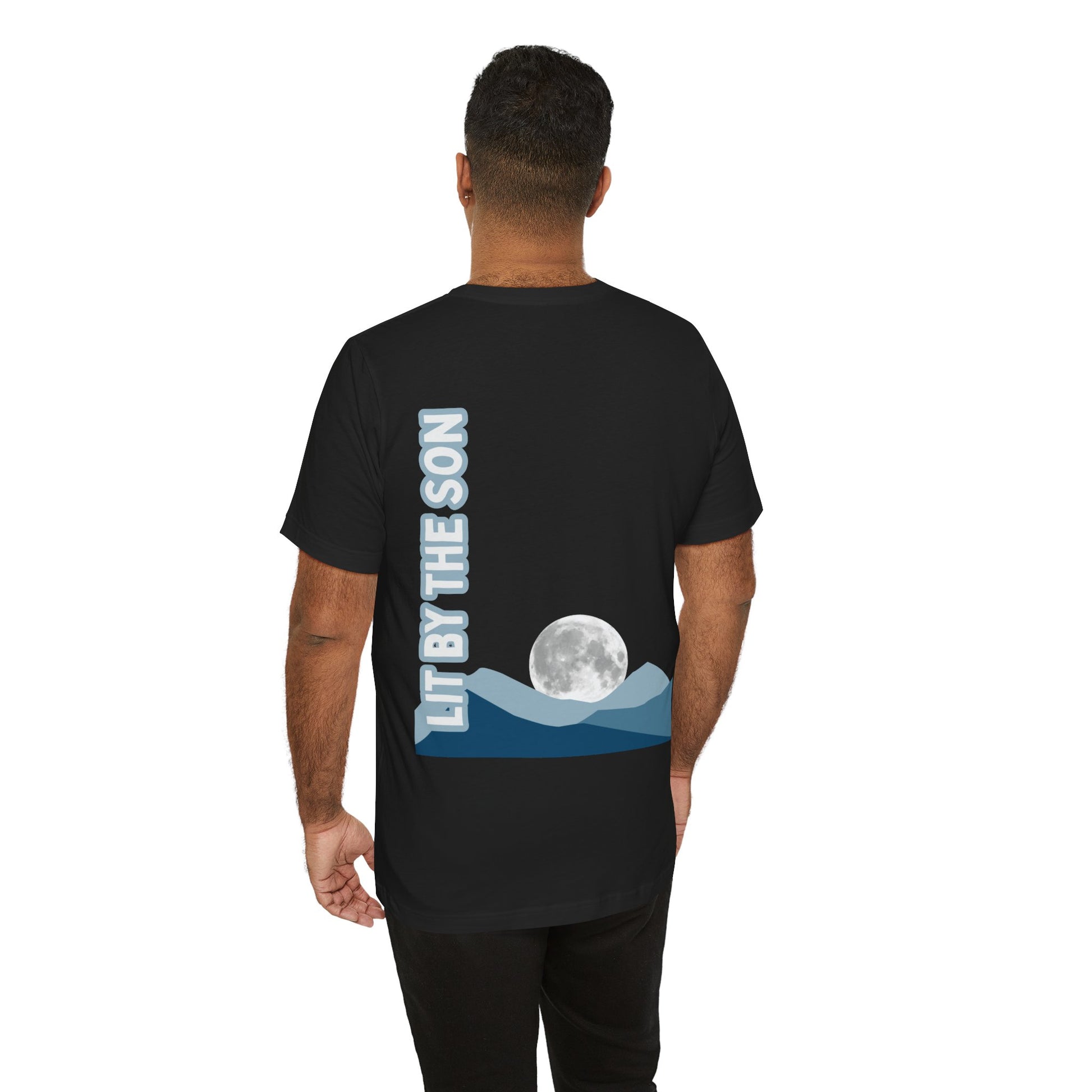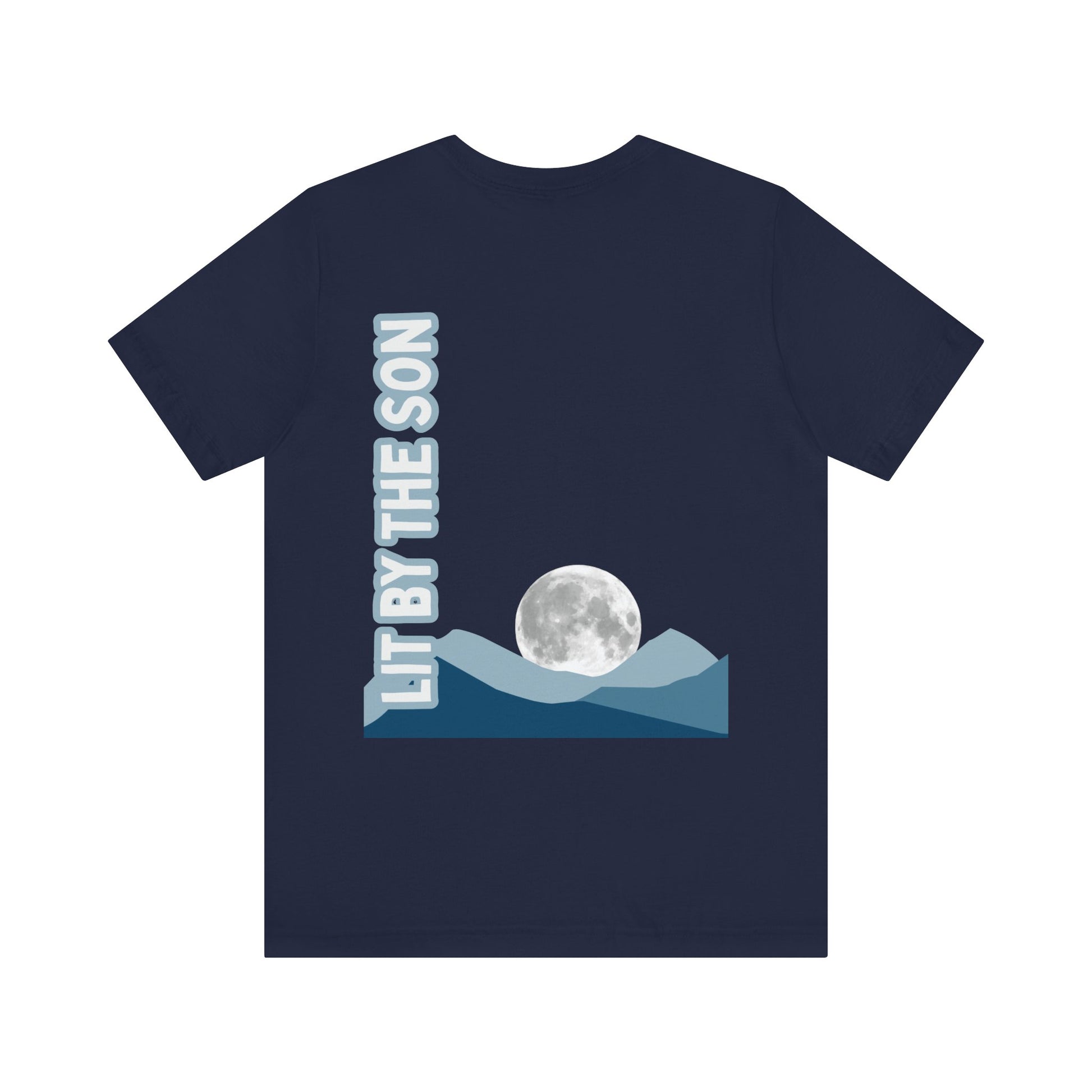 When life feels dark, uncertain, or overwhelming, this tee is your reminder: you were never meant to shine on your own.Just like the moon rises over the mountains, glowing in the night sky, your light comes from the One who made you.