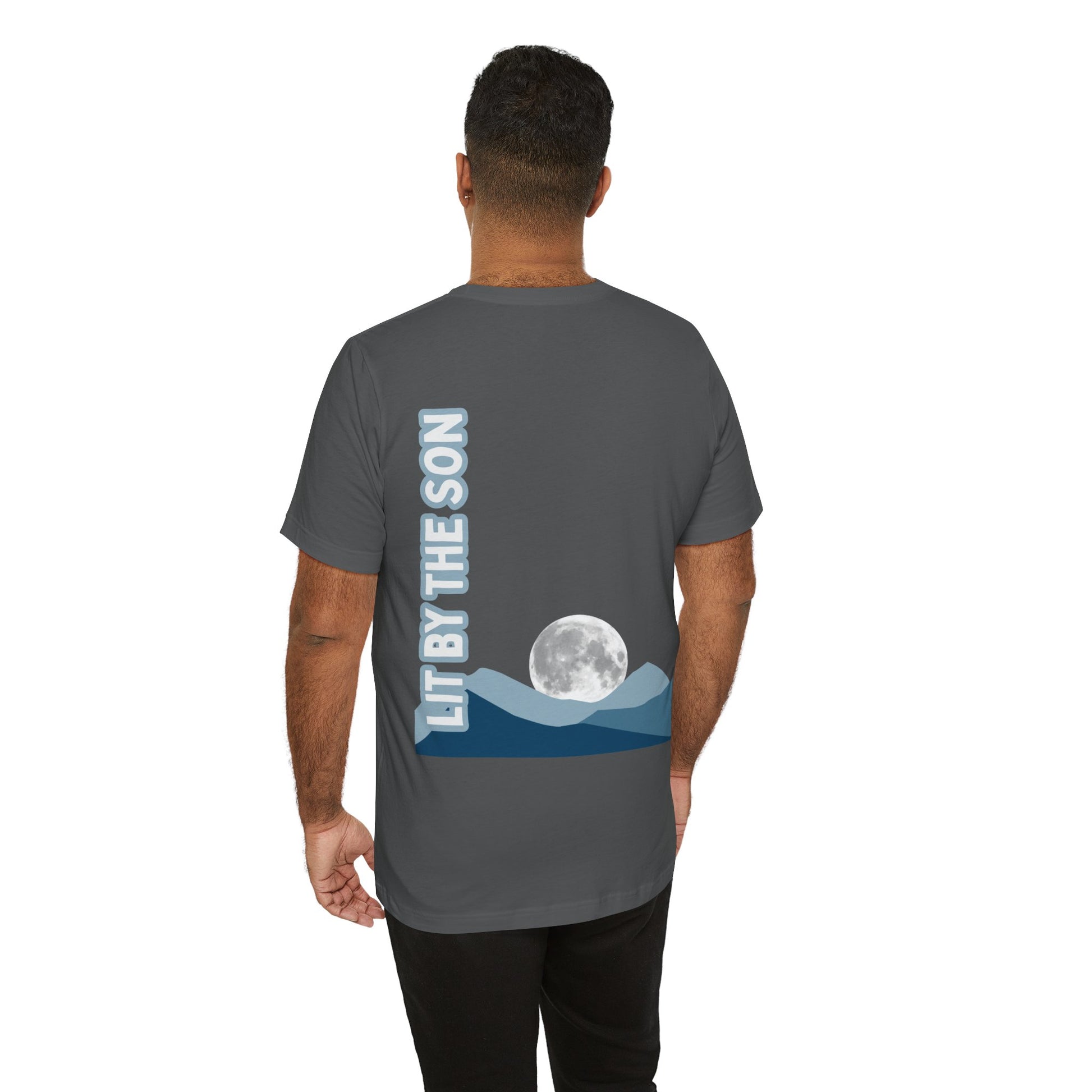 The Lit by the Son Tee features a soft, nature-inspired design with a moon rising above a mountain range on the back, paired with the words “Lit by the Son.” It’s a quiet but bold declaration that your strength, your hope, your light—it all comes from Jesus.